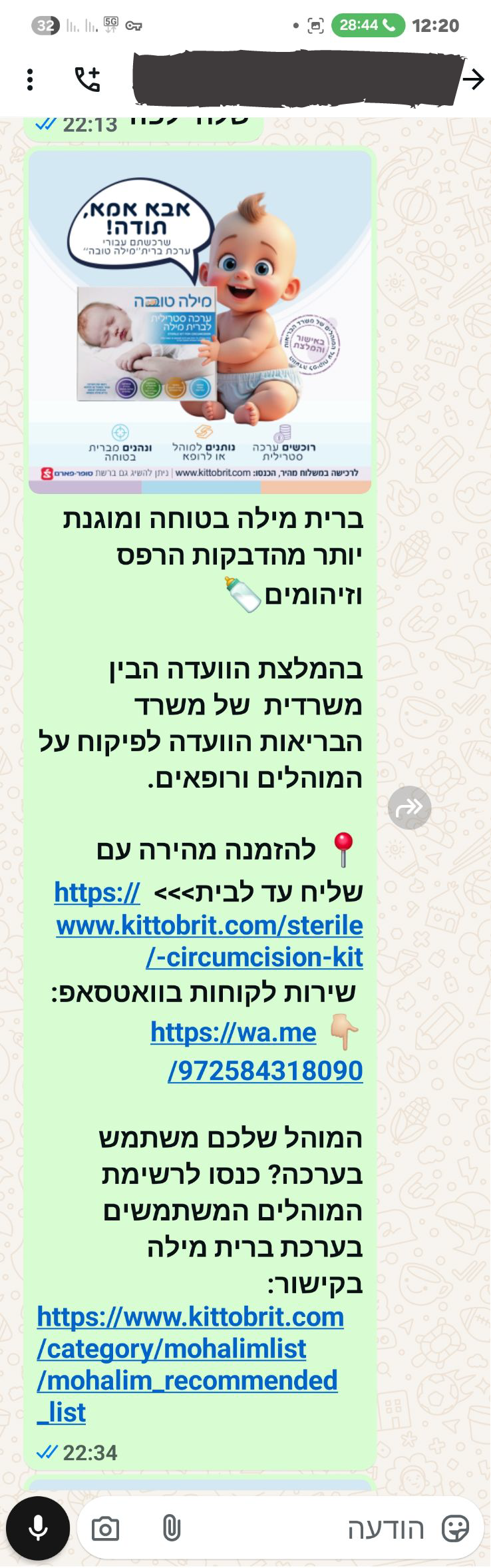 ⭐ המוהל יפורסם ברשימת המוהלים המומלצים המשתמשים בערכה סטרילית המפורסמת במסגרת הקמפיינים שלנו.